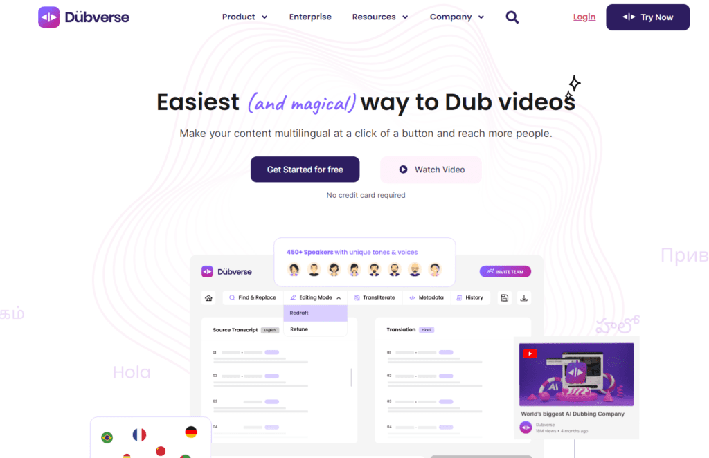 It is an impressive and powerful AI-powered video localization and dubbing tool that can translate and dub your audio and videos into 130+ languages. It has the ability to automatically transcribe speech into text and seamlessly translate your videos into multiple languages and even have AI-generated voice overs to dub the content. It is perfect for youtubers who want to reach audiences in other languages.