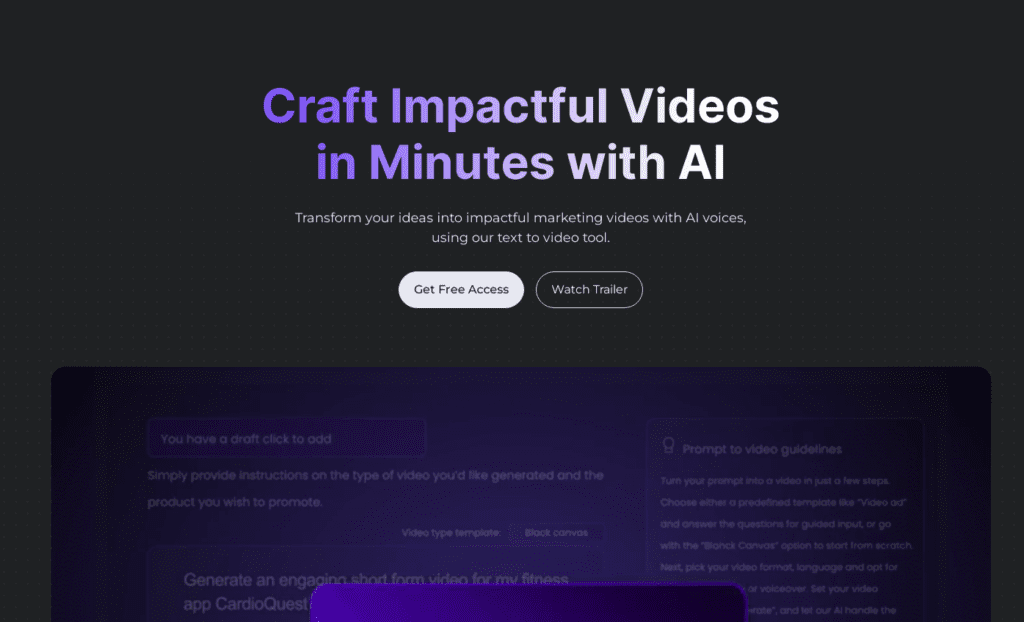 It is an innovative video creation platform that leverages AI to streamline the process of creating engaging videos for marketing and social media purposes. It allows you to transform text prompts, scripts, or blog posts into impactful marketing videos within seconds. It offers over 120 humanlike text-to-speech voices. No prior design or video editing experience needed.