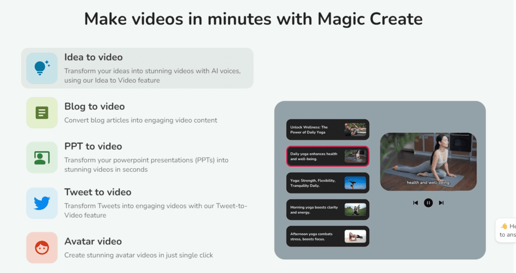 It is an AI-powered platform that enables you to create engaging videos with professional-grade voiceovers. It supports over 75 languages and 100+ dialects. It offers 1300+ ultra-realistic AI voices for high-quality voiceovers. It supports voice cloning, enabling you to replicate your own voice or create unique voices for different characters. And it allows you to transform written blog articles into engaging videos.
