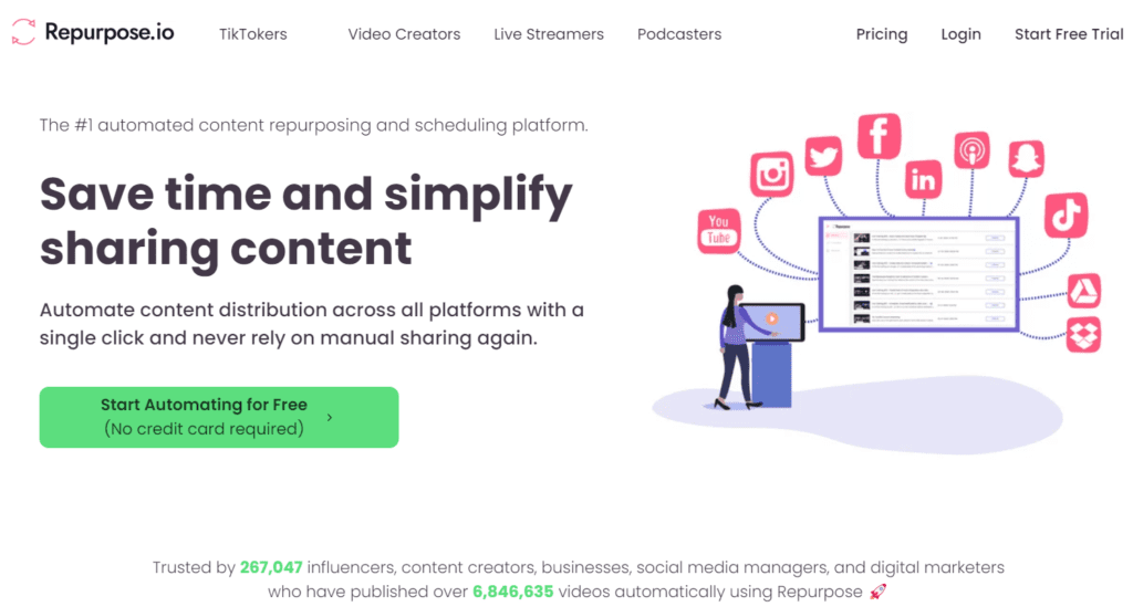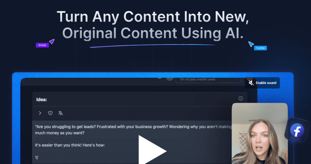 This platform offers a seamless way to repurpose various types of content, including YouTube videos, TikToks, podcasts, and Zoom calls, into multiple formats suitable for different social media platforms. It enables you to post your content only one time and it repurposes and auto-publishes it into various platforms such as Instagram, Tiktok, Pinterest, Snapchat and more.