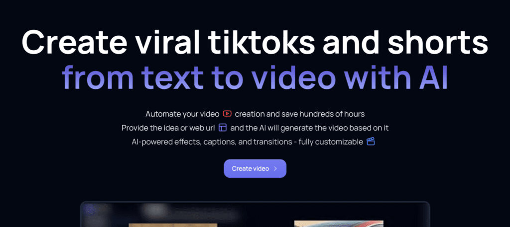 It is an AI-powered platform that enables you to create engaging TikTok, Reels, and Shorts videos quickly. It allows you to generate videos directly from text prompts or scripts. It automates various video editing tasks, such as adding captions, sounds, music, and transitions.