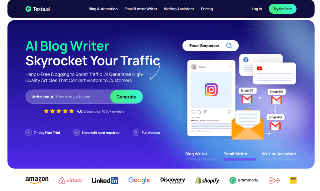 A robust AI writing assistant that can streamline your content creation process. It offers advanced features like customized, SEO-optimized content generation across multiple languages, brand voice customization, and interactive chatbot support.